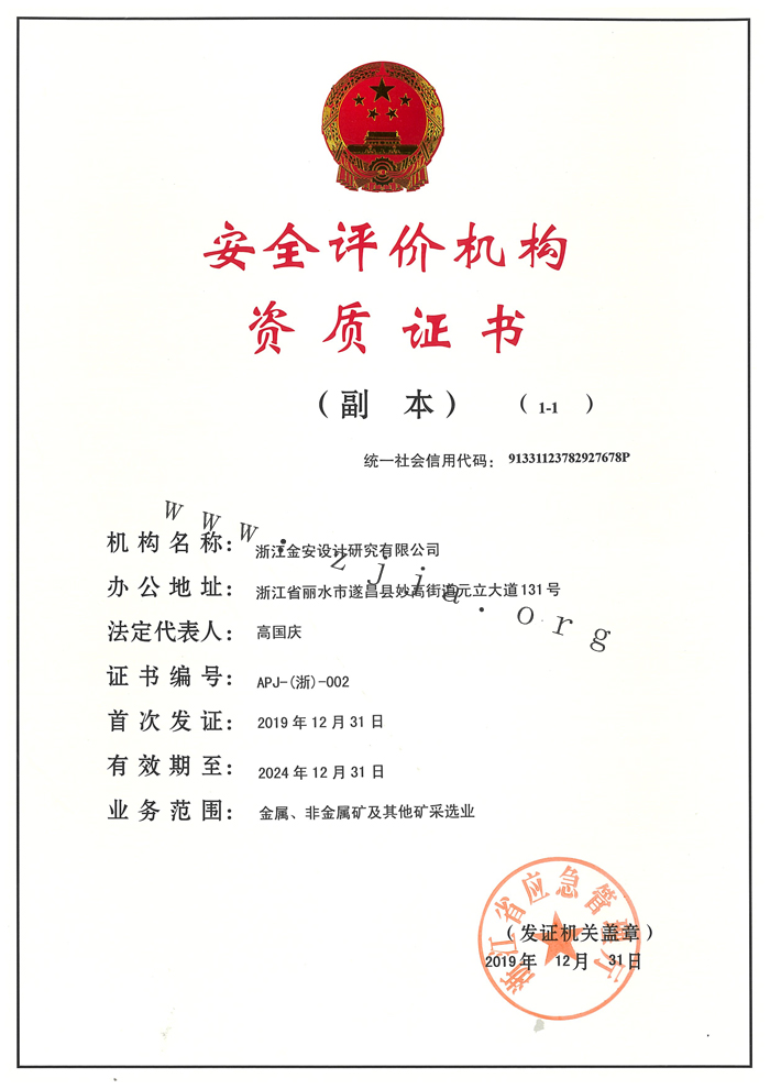 名称:安全评价资质