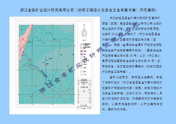 名称:浙江省遂昌县金竹镇大西坞矿区萤石矿普查实施方案(变更)坑探工程设计及安全卫士专篇