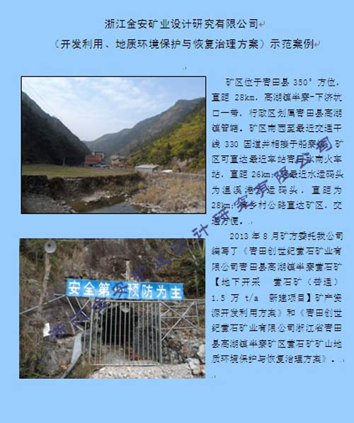 名称:青田创世纪萤石矿矿业有限公司青田县高湖镇半寮萤石矿矿产资源开发利用方案
