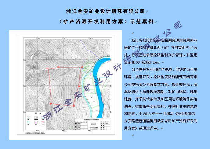 名称:松阳县新兴乡安路源普通建筑用凝灰岩矿矿产资源开发利用方案