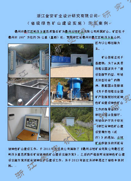 名称:衢州市衢江区岭洋乡里芭蕉萤石矿省级绿色矿山验收