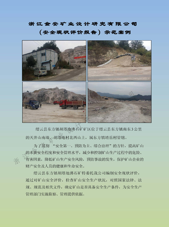名称:浙江省缙云县天井山矿产加工厂缙云县东方镇胡塔地沸石矿安全现状评价报告