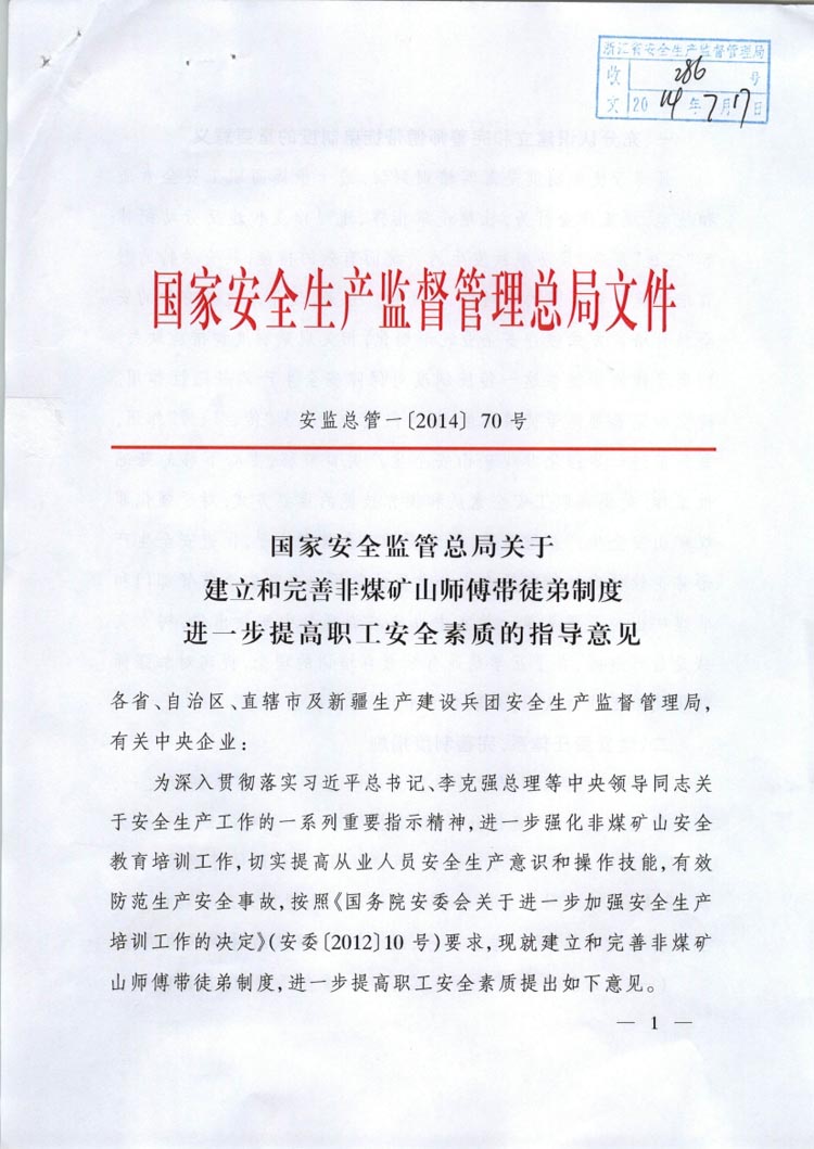 关于建立和完善非煤矿山师傅带徒弟制度进一步提高职工安全素质的指导意见