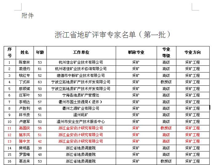 浙江省国土资源厅关于聘任浙江省地矿评审专家(第一批)的公告〔2017〕6号