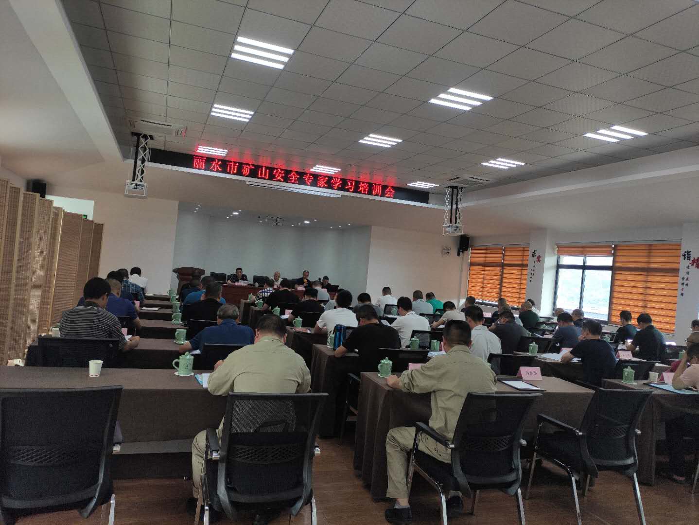 由丽水市应急管理局主办、浙江金安设计研究有限公司协办的“丽水市矿山安全专家学习培训会”于6月22日-23日在遂昌顺利进行,丽水市及下辖的各县 (市、区)应急管理局分管矿山安全监管业务的局长和科室负责人、矿山安全生产(应急管理)专家近50人参加了本次培训。